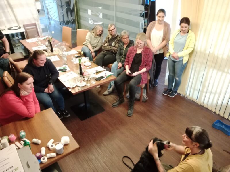 Unter der fachkundigen Leitung von Tierärztin Carmen Hinterdorfer erhielten die Teilnehmer eine umfassende Einführung in die wichtigsten Maßnahmen zur Erstversorgung von verletzten oder erkrankten Hunden. Carmen vermittelte die Inhalte nicht nur kompetent, sondern auch mit viel Humor und Praxisbezug – so verging die Zeit wie im Flug.