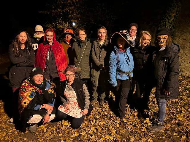 Gruselige Gestalten tummelten sich am Vorabend vor Halloween im Klosterhof in Bebenhausen. Zum Glück waren motiverte Suchhunde in großer Anzahl vertreten und konnten in einer Nacht- und Nebelaktion alle zwielichten Personen aufspüren.