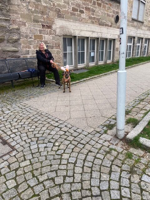 So ein Osterhase läuft eine ganz schön lange Strecke – gut, dass vier Pettrailer-Teams am Ostersamstag am Start waren. Diesmal mussten erst die Hundeführerinnen etwas finden. Als jede einen „Geruchs-Hasen“ in der Tasche hatte,  ging es auf die Suche.