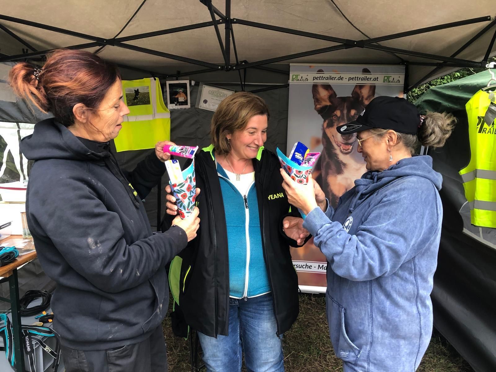 Als Pettrailer durften wir hier den Verein und unsere Aufgaben präsentieren. Neben der Vorstellung der unterschiedlichen Tätigkeiten bei Pettrailer Baden-Württemberg und Österreich gab es die Möglichkeit für die Besucher, einen Geruch vom Hund herzustellen. Dieser ist im Ernstfall bei Entlaufen des Hundes eine wichtige Grundlage für die Arbeit von Suchhunden.
