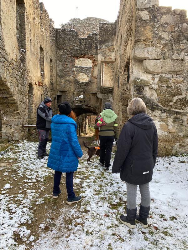 Nicht nur Mensch, auch Hund war zum Teil beeindruckt von dem Mittelalterlichen Gemäuer.