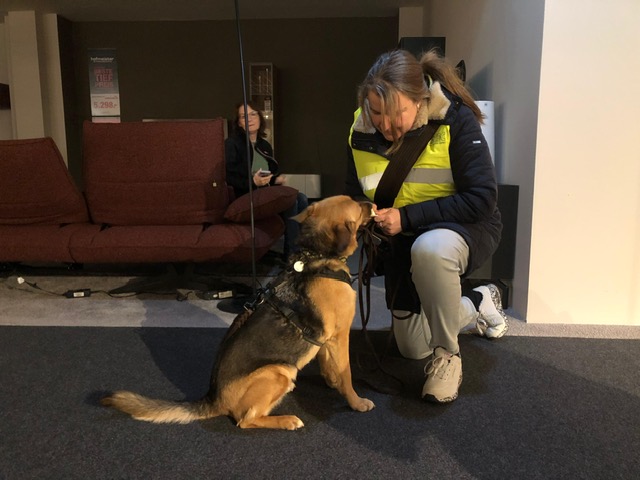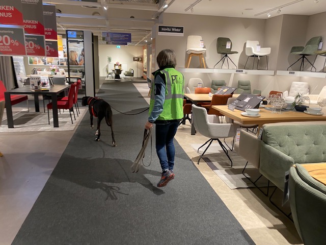 Für die Hunde ist ein Indoor-Trail mit vielen Gerüchen und Ablenkungen eine große Herausforderung und entsprechend ausgelastet waren am Ende alle Vierbeiner. Beim anschließenden Besuch in der Cafeteria konnten sich Hundeführerinnen und das Trainer-Duo noch über das Erlebte austauschen.