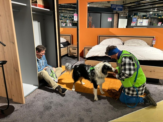 Bereits geübte Indoor-Trailer und Teams, die zum ersten Mal im Möbelhaus dabei waren, durften im weitläufigen Einrichtungshaus mit unzähligen Versteckmöglichkeiten ihr Können unter Beweis stellen.